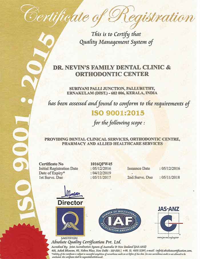 Dr Nevins is one among the best dentist in Kochi & His Family Dental Clinic is an ISO Certified Dental Clinic Located in Suriyani Palli Junction Palluruthy very near to Thopppady , The Clinic is a Center For Excellent in Dentistry Run by Dr Nevin Thomas and His wife Dr Jefna Nevin . Clinic has specialist doctors in all clinical branches of Dentistry which include Conservative Dentistry and Root Canal Treatment. Orthodontics (Braces/Clip) Periodontics (Gum Treatment) Pedodontics (Childrens/ Kids dentistry) Oral and Maxillary Surgery and For Dental Implants making the clinic in one of the Best Dental Clinic in Kochi We have car parking facility of up to 10 cars exclusively for Dental Clinic, We follow world class infection control protocols and Sterilization of instruments and equipment , Dedicated Kids room ample patient waiting area and we provide homely atmosphere making patients be more calm. Clinic has friendly and polite staffs and doctors as well as use mailny world class dental materials and equipments only